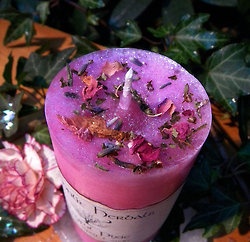 Herb candles in scents of peppermint, bayberry, cinnamon, frankincense, sandalwood, vanilla, strawberry