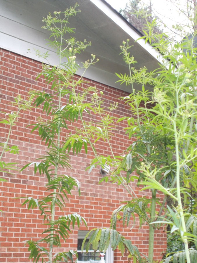 It’s mid-October now, and the huacatay plants have started to bloom. Most of them are six to seven feet tall. Strong winds a few weeks ago made some of them fall over or break at the middle, so I propped them up with stakes and string, and weeks later they seem none the worse for their mishap.