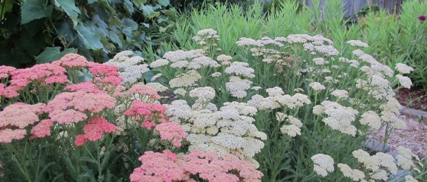 Yarrow– A hardy perennial that blooms all summer and grows to a height of 3 feet. Common yarrow has pinkish-white flowers. Yarrow is used in tinctures and salves. Once plants are established, they require little water during the growing season. This is an underutilized culinary and medicinal herb.